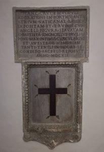 Un “unicum” che raggiunse Boville Ernica grazie a monsignor Simoncelli, “bovillese” e segretario di papa Paolo V. Il Simoncelli staccò dalla basilica costantiniana un’altra piccola chicca: la croce di porfido (foto) che i pellegrini baciavano all’ingresso della porta santa, nel primo Giubileo del 1300.