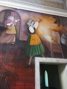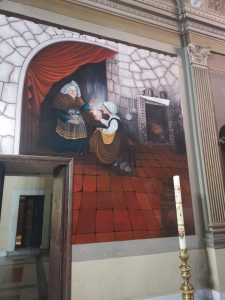 I fatti risalgono al 1228, una trentina d’anni prima del miracolo di Bolsena (1263). E sono rappresentati da una serie di affreschi recenti (fine Novecento), realizzati nelle pareti laterali della chiesa.