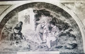 L’affresco di Subiaco (l’autore Ludovico Grillotti lo eseguì nel 1911) non fa che riproporre una tradizione che trova negli affreschi di Benozzo Gozzoli (databili intorno al 1450), a Montefalco, una delle prime rappresentazioni pittoriche. Giotto non si ciba di questa “leggenda”, nel suo racconto dipinto della biografia del Santo, anche se proprio ad Assisi da sempre si “venera” l’Oratorio di “San Francesco piccolino”, che dovrebbe essere proprio la stalla dove nacque il piccolo Giovanni Bernardone.