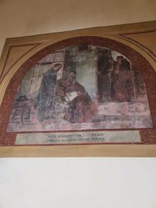 Nato in una stalla come il Figlio di Dio. O almeno così vuole una tradizione che non ha fonti certe, ma vanta molte rappresentazioni. Una, non la più recente, è quella che si trova dipinta in una delle lunette del chiostro del Convento di San Francesco a Subiaco.