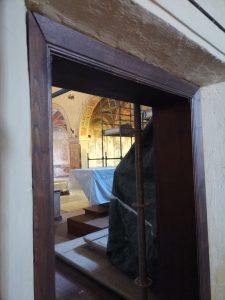Dobbiamo crederci sulla parola, anche di quella di una simpatica suora Nives, che ci accompagna nella visita al chiostro, l’unico spazio visitabile ancora per un paio di mesi.