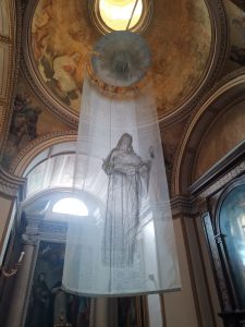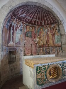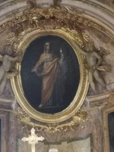 Nell’abside campeggia una tela del Cavalier d’Arpino, in cui santa Maria Sàlome è ritratta con la pisside ripiena di oli e unguenti (mirra) da usare dopo la deposizione di Cristo. “C’erano anche là molte donne che stavano a osservare da lontano; esse avevano seguito Gesù dalla Galilea per servirlo. Tra costoro Maria di Màgdala, Maria madre di Giacomo e di Giuseppe, e la madre dei figli di Zebedèo” (Matteo, 27,55-56).