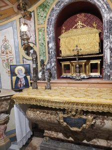 L’urna ritrovata nel 1209 aveva un’iscrizione univoca: “Hae sunt reliquiae B. Mariae Matris apostolorum Jacobi et Joannis”. Sul luogo sorse un oratorio (oggi nella cripta della Basilica si trova l’urna, l’altare e un affresco del XIII secolo) e poi la Basilica. Oggi i resti della santa si trovano nell’imponente confessione marmorea, sotto l’altare maggiore.