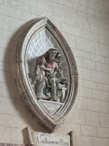 Per fare pace con la bellezza merita una sosta la terracotta (secentesca) di una Maternità sorridente (ride la Madre, ride il Bambino: il loro sorriso ricorda la maternità in terracotta di Leonardo) nella mandorla posta sopra l’ingresso della sacrestia, un tempo posta nell’abside.